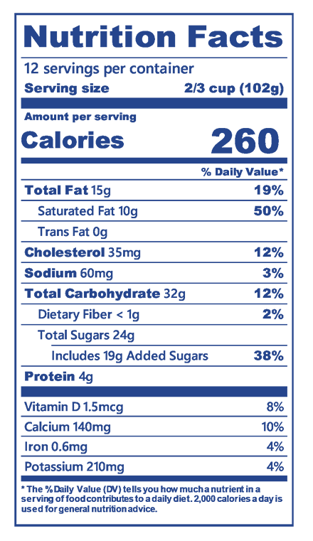 Milk, cream, skim milk, sugar, corn syrup, high fructose corn syrup, coconut oil, contains 1% or less of: cocoa (processed with alkali), anhydrous milk fat, nonfat dry milk, palm kernel oil, dry whole milk, soy lecithin, salt, natural flavor, cellulose gum, guar gum, carrageenan, carob bean gum, vegetable juice (for color), peppermint oil.